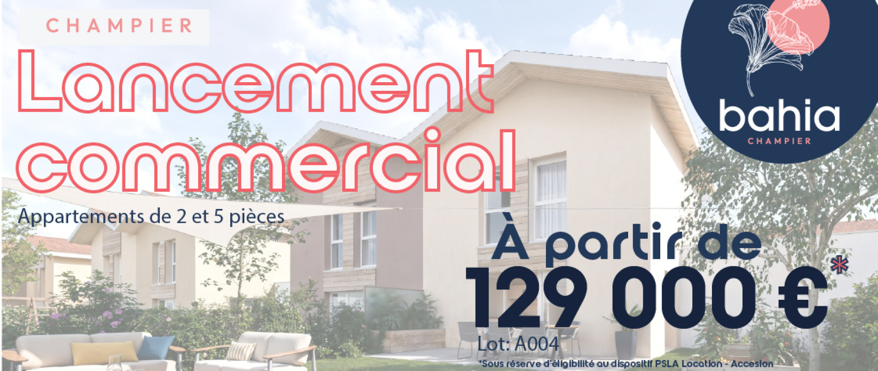 Nous avons le plaisir de vous annoncer le lancement commercial Bahia à Champier ! Découvrez en exclusivité ce nouveau programme immobilier en location-accession (PSLA) qui conjugue qualité de vie, nature et confort et intégration paysagère