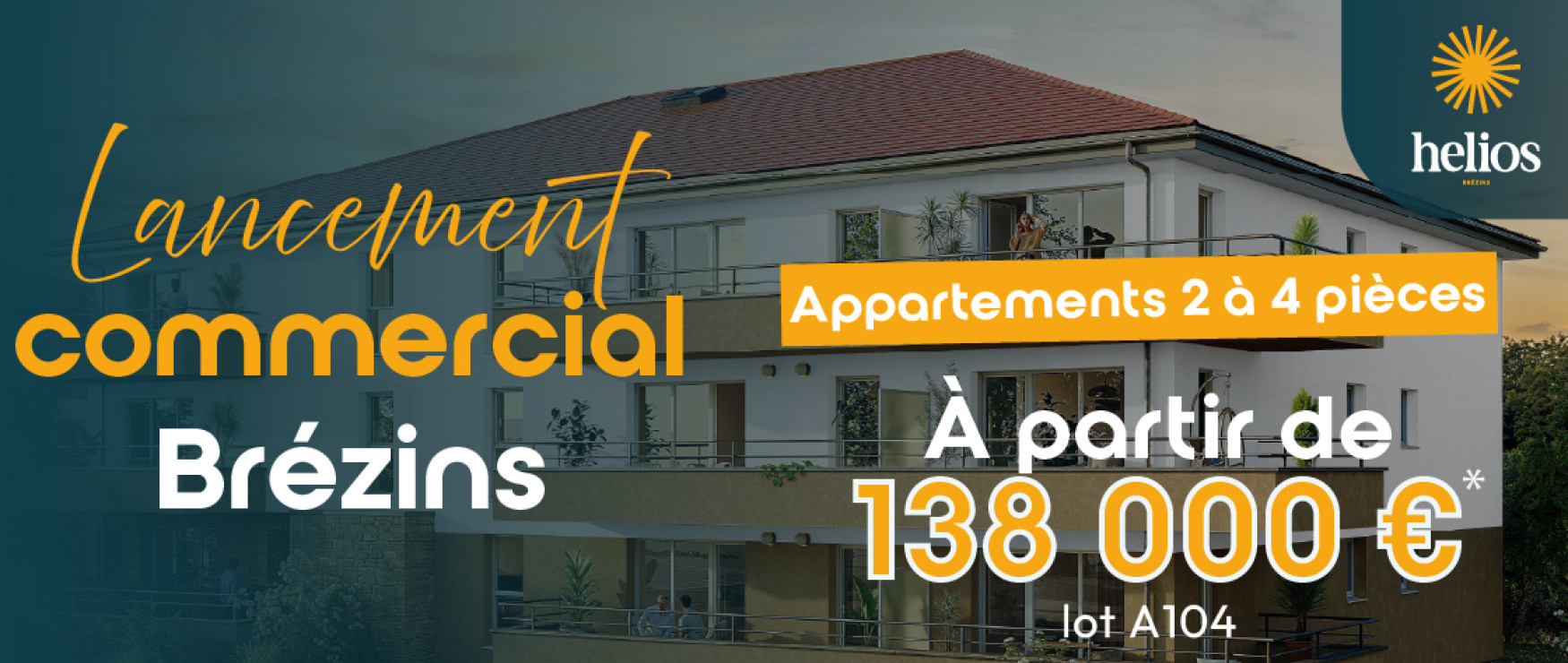 Lancement de la résidence Helios, dans la commune de Brézins, cette résidence propose 15 appartements neufs, allant du 2 au 4 pièces, conçus pour allier confort et modernité.