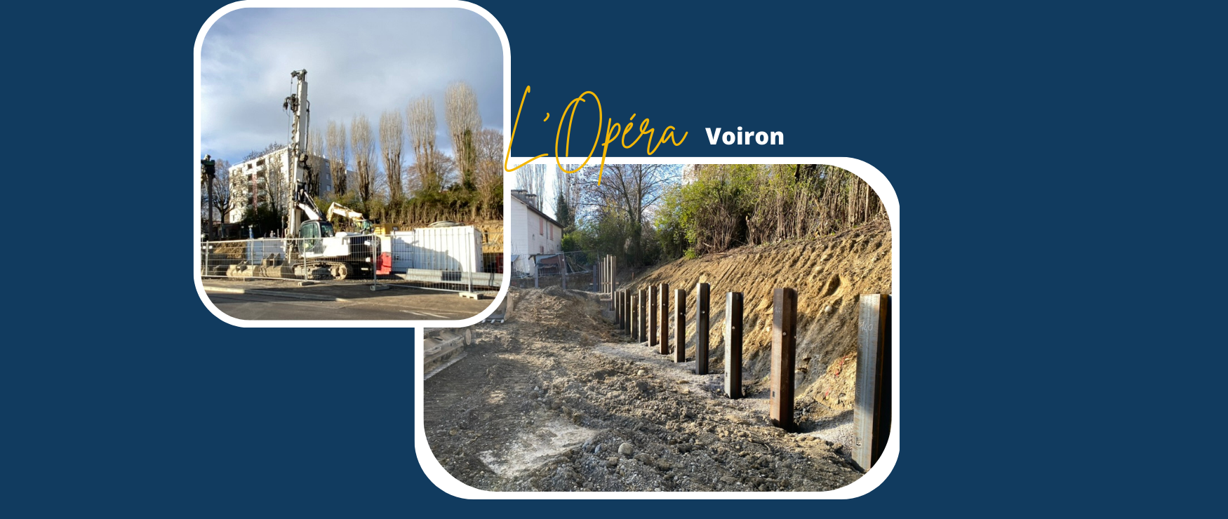 Le pré-terrassement a été réalisé pour laisser place aux travaux de soutènement. Après avoir préparé le terrain, l’entreprise SALVI laisse la place à l’entreprise SGC pour la mise en œuvre des berlinoises.