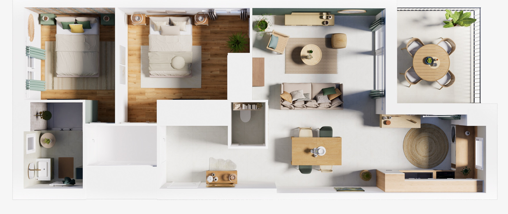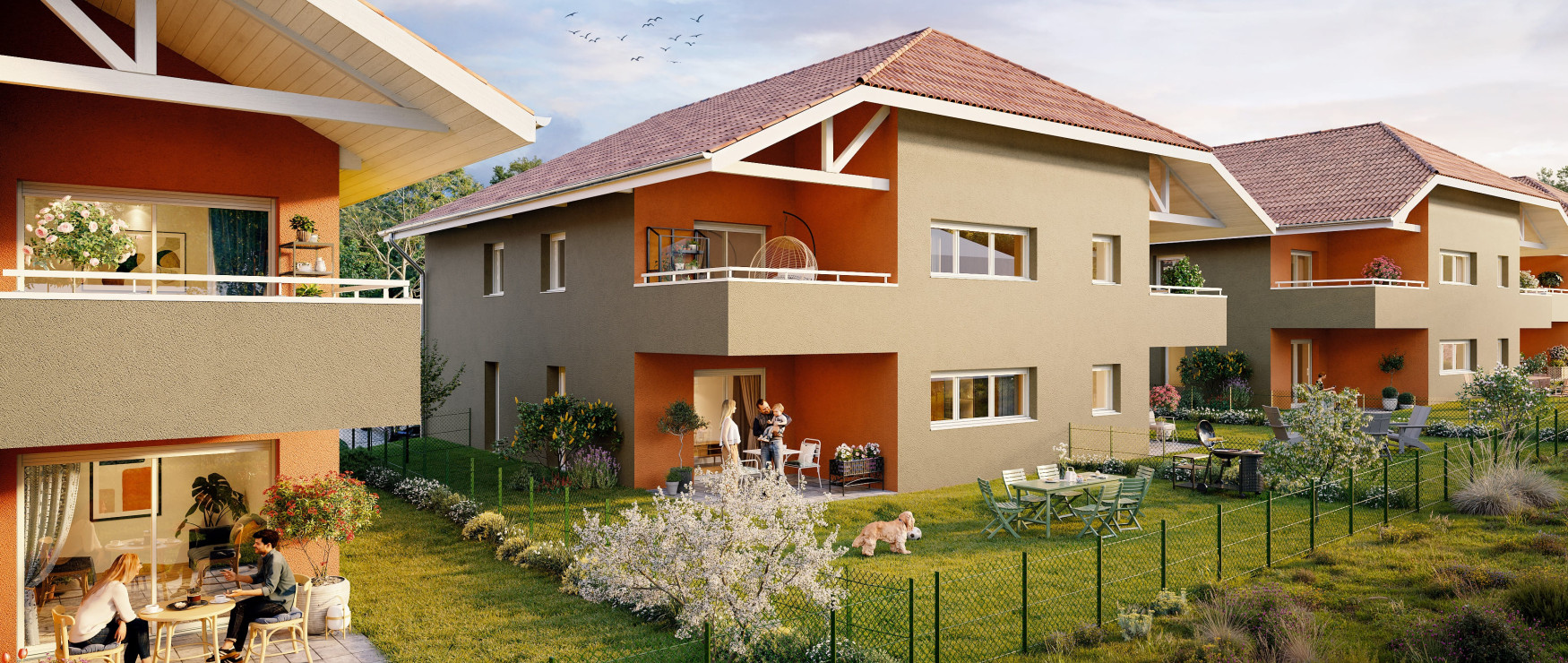 Chaque logement bénéficie d’une belle luminosité, d’une double ou triple orientation, et d’un espace extérieur privatif : terrasse, balcon ou jardin.