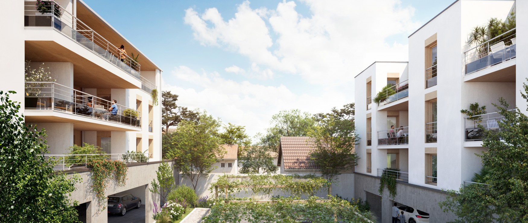 Tous les logements bénéficient d’un extérieur privatif – balcon ou terrasse – qui prolonge les pièces de vie, ainsi que d’un stationnement couvert inclus. L’ensemble est clos et sécurisé, garantissant tranquillité et sérénité à ses habitants.